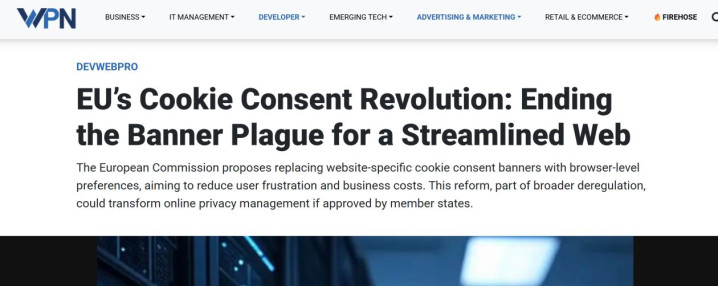 改革将分阶段推进:初期网站Cookie提示将简化为单次点击的“是/否”选项,降低用户操作成本;后续随着技术方案集成至主流浏览器,将实现更高效的全局隐私管理。新规同时明确,网站需在至少六个月内持续遵守用户的Cookie选择,同时针对网站访问量统计等“无害用途”,禁止显示不必要的Cookie横幅,进一步减少弹窗干扰。