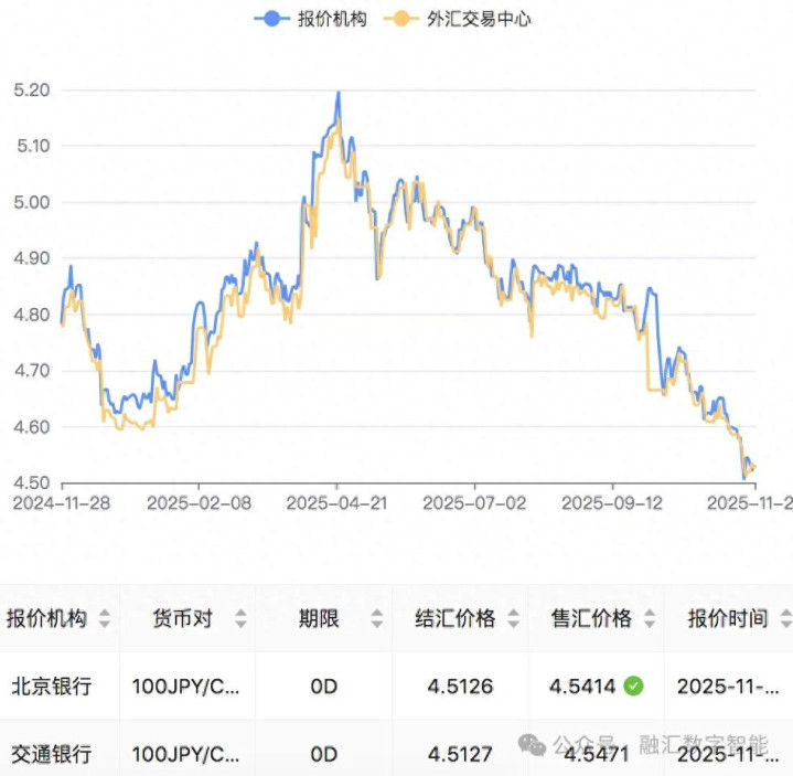 然而,外汇市场的反应远较预期温和。11月27日,中国外汇交易中心数据显示,100日元兑人民币中间价约为4.82元,较前日微跌不足0.3%,并未出现剧烈贬值。与此同时,日元兑美元在155–157区间内震荡,也未突破近期波动区间,整体呈现“政策预期升温、汇率温和整理”的格局。